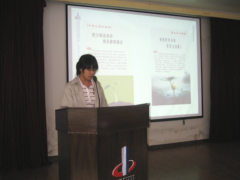 為推進(jìn)中鋼天源公司企業(yè)文化建設(shè),加強公司企業(yè)文化的宣傳工作,加深廣大員工對企業(yè)文化內(nèi)涵的理解,進(jìn)一步挖掘“十三項企業(yè)文化專項理念”的深刻含義,宣傳公司中的先進(jìn)事跡和個人,促進(jìn)企業(yè)文化的傳播,根據(jù)黨委創(chuàng)先爭優(yōu)活動中黨建帶團(tuán)建的總體安排,中鋼天源團(tuán)委先后開展了企業(yè)文化理念故事征文和優(yōu)秀理念故事推薦活動,并于9月10日下午開展了企業(yè)文化理念故事會演講,公司領(lǐng)導(dǎo)、各部門、各單位負(fù)責(zé)人以及來自各單位的17名選手50余人參加了此次演講活動。