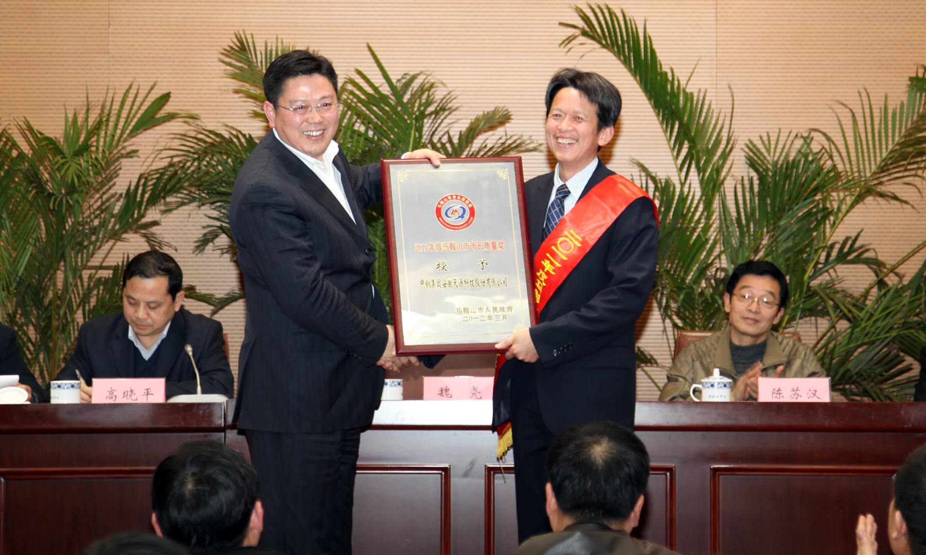 2012322下午,在市政府會議中心第二會議室召開了全市質量技術監督工作會議上,中鋼天源榮獲2011年馬鞍山市市長質量獎”稱號。