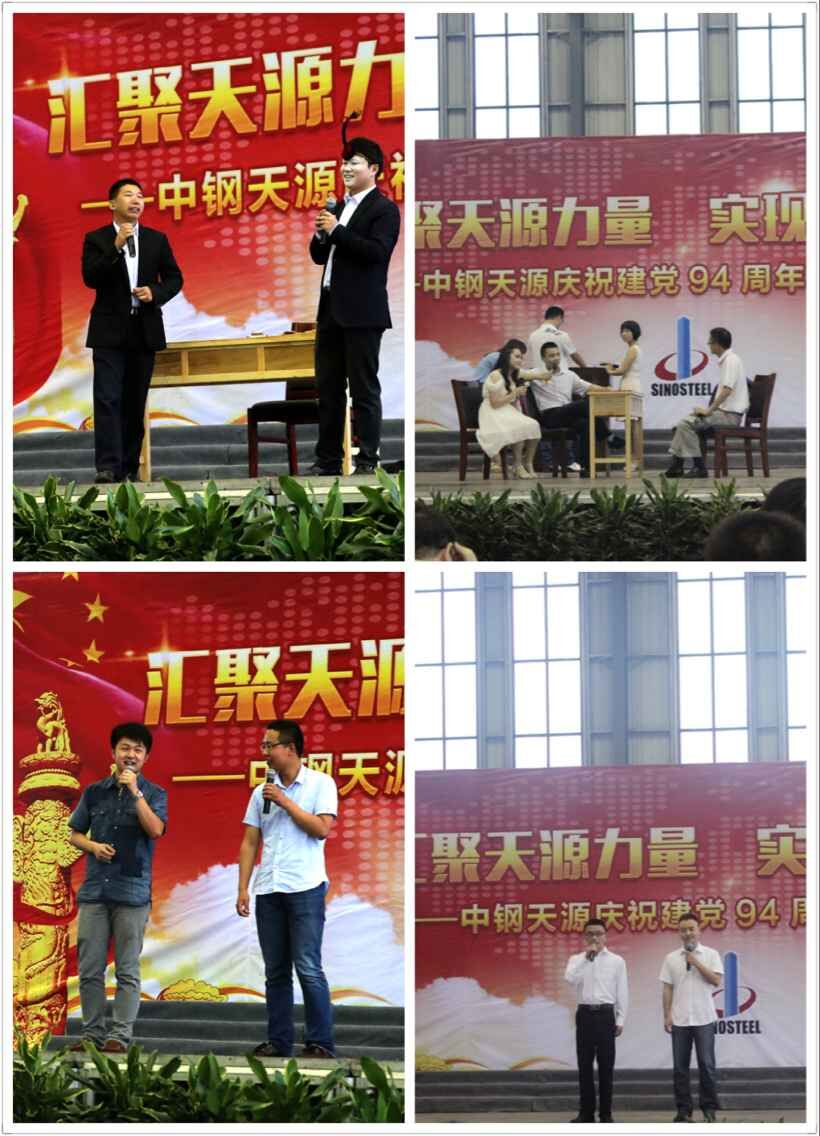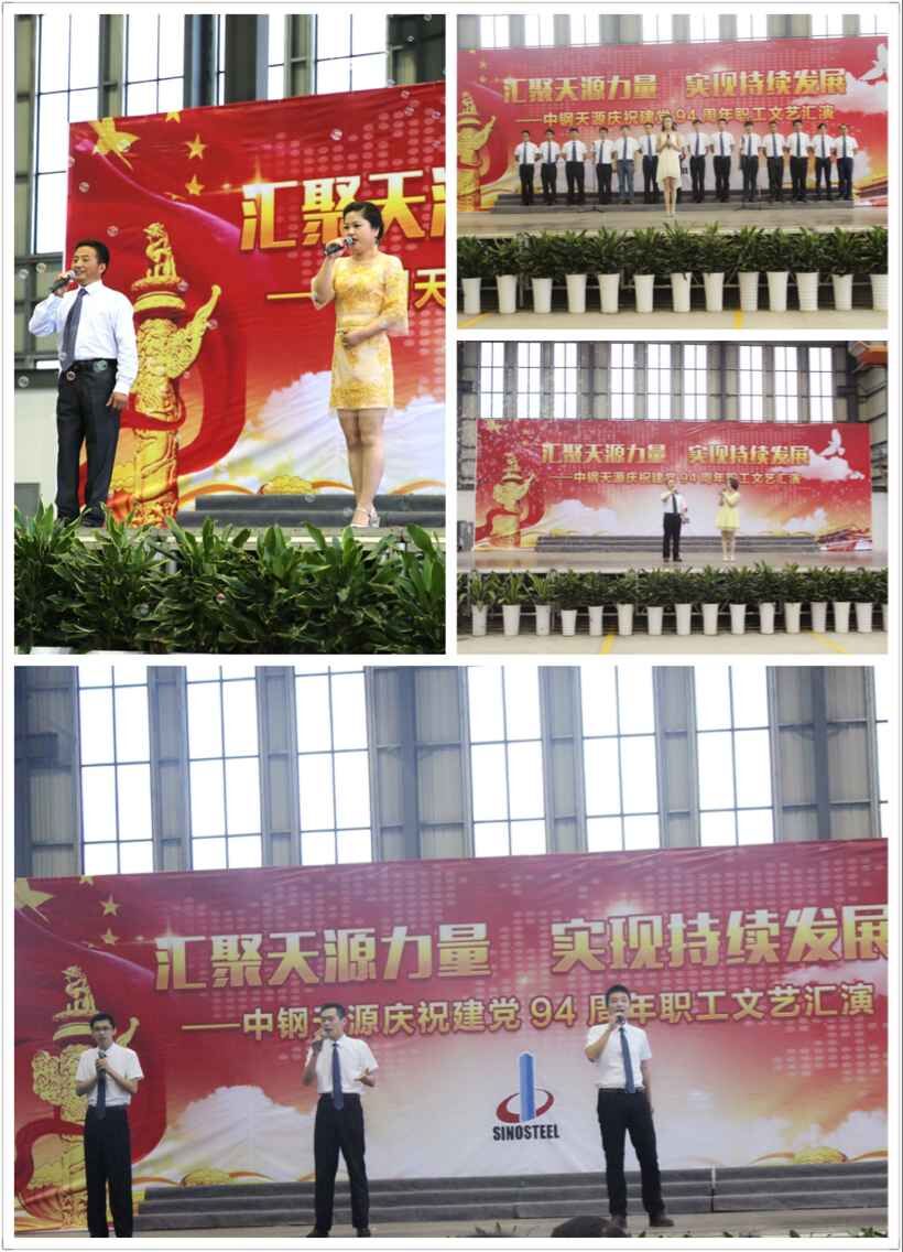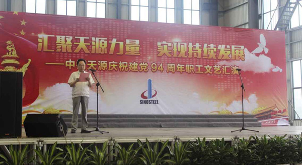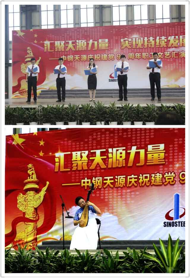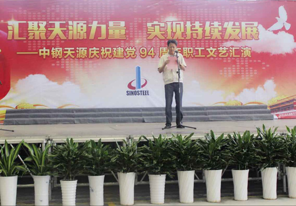 為慶祝建黨94周年,充分展現公司成立以來的輝煌成就、廣大干部員工干事創業的精神風貌,弘揚正能量,6月27日上午,由中鋼天源黨委主辦,黨群工作部、工會、團委協辦的“匯聚天源力量、實現持續發展——中鋼天源慶祝建黨94周年職工文藝匯演”在公司新區隆重舉行。公司領導班子及高管,各單位、各部門助理以上中層干部,退休老同志代表,在公司的人大代表、政協委員,公司第二屆職代會、工代會代表,公司成立以來在各條戰線上獲得榮譽表彰的先進模范人物代表共200余人觀看了演出。