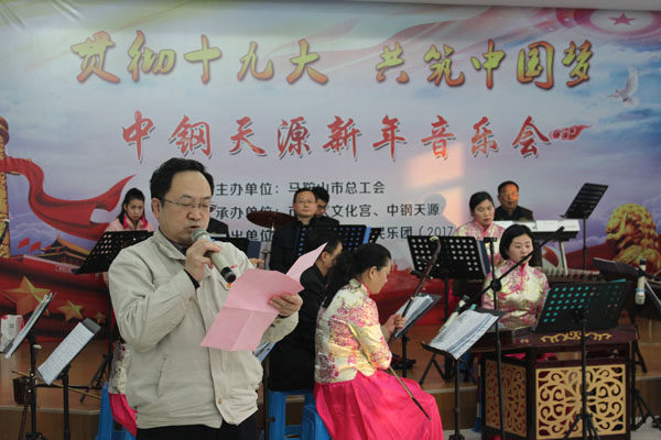 12月21日下午,由馬鞍山市總工會主辦、中鋼天源、市工人文化宮承辦的“貫徹十九大、共筑中國夢”新年音樂會在公司第一培訓教室隆重舉行。市總工會黨組書記、常務副主席李迅出席活動并講話,中鋼天源常務副總經理張野、黨委副書記、紀委書記、工會主席亞海斌、副總經理吳剛等出席活動,公司新區100多名員工到場聆聽了音樂會。